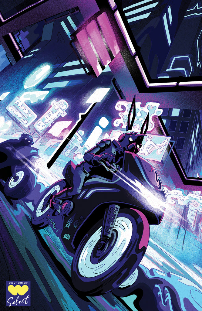 NONSTOP! where Scout releases a World Premiere issue followed by the entire story a few months later in one volume. In a post-apocalyptic world where humanity has embraced robotic bodies to survive, one such robot begins to doubt his thoughts are really his own. Rabbit, robot 0045, is approached by a mysterious stranger known as the Magician, who begins an investigation toward a horrible truth that Rabbit could never have imagined. Perhaps this world is even more sinister than it seems.